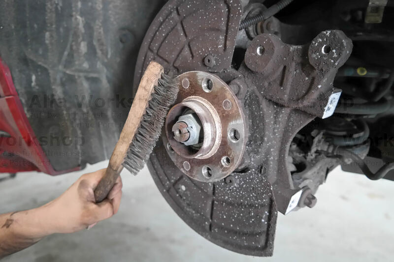 The brake disc sticks to the hub so using a copper mallet strike around the face of the disc to loosen the corrosion.
