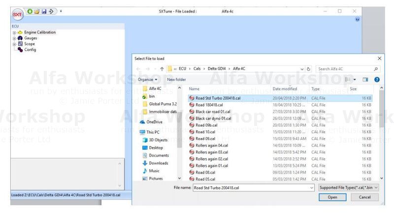 Step 3: Open SXTune and the target calibration file (make sure it is the correct