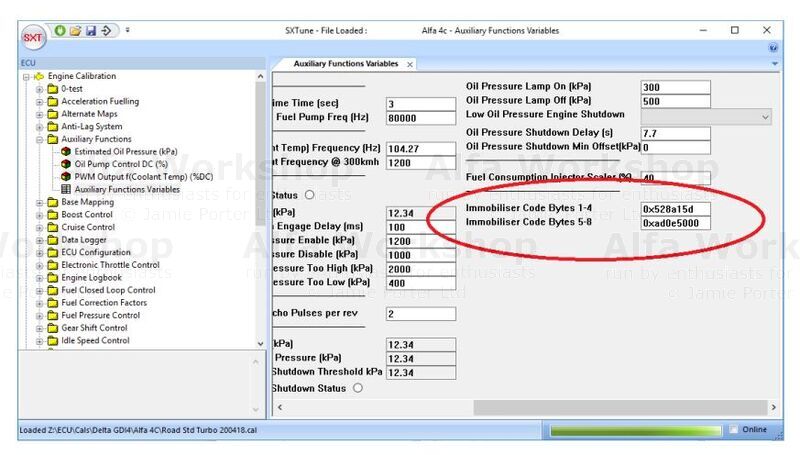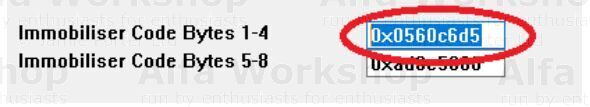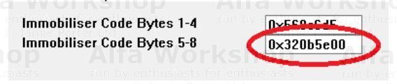 bottom of the list of parameters are two boxes ‘Immobiliser Code Bytes 1-4’ and ‘Immobiliser Code Bytes 5-8’.