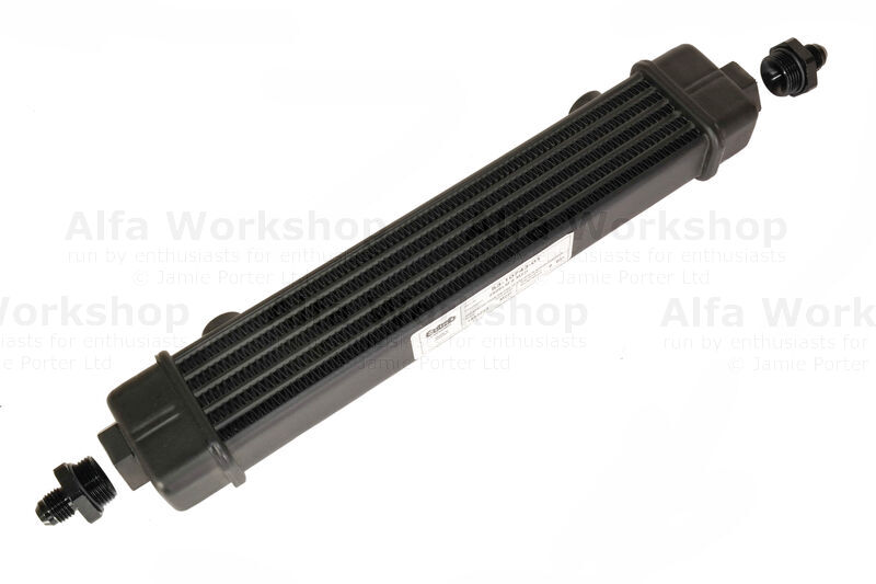 Screw the adaptors into either end of the gear box oil cooler.