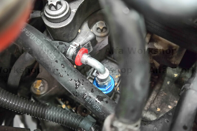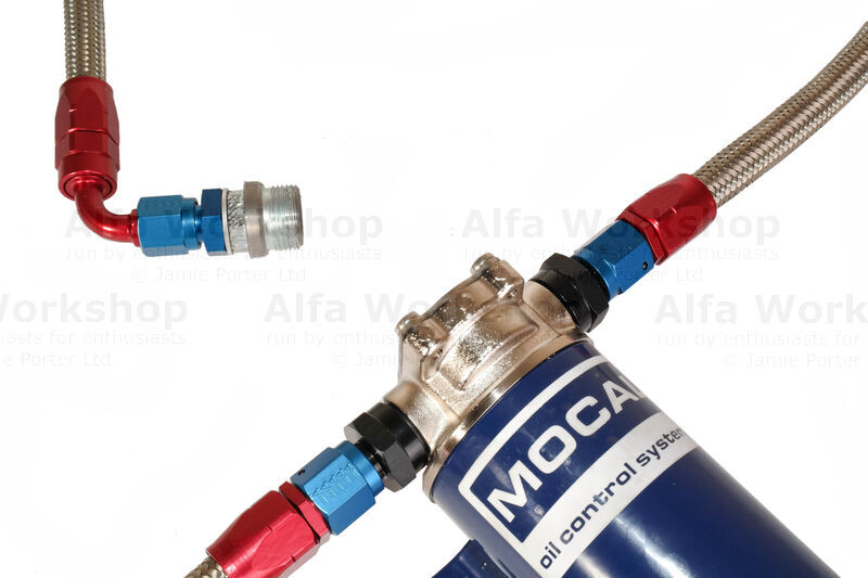 Replace the gearbox filler bung with the oil cooler filter adaptor then screw on the other end of the elbowed hose.