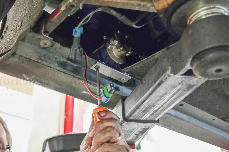 We fitted the pump to the side skirt support rail just in front of the left hand rear wheel.
