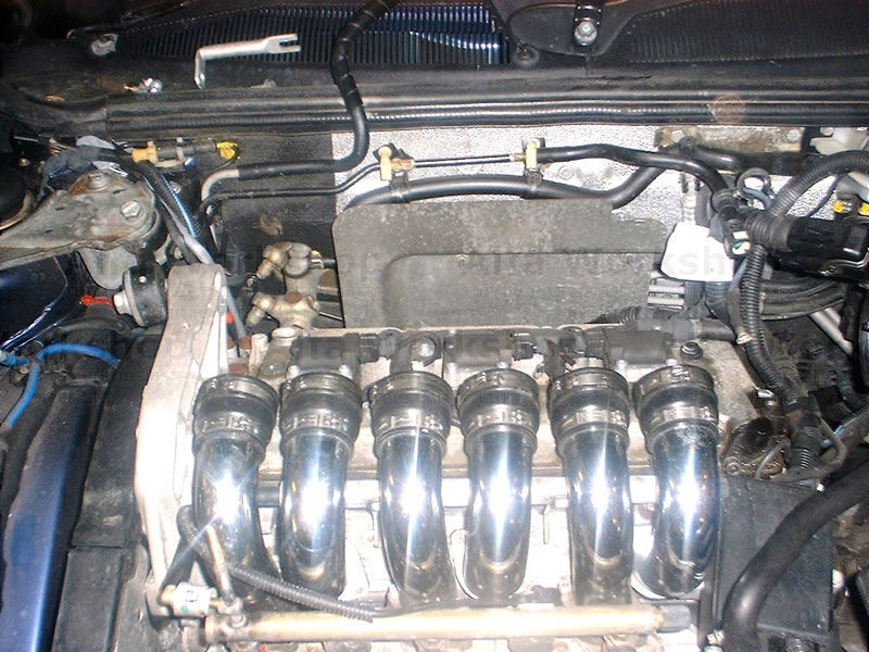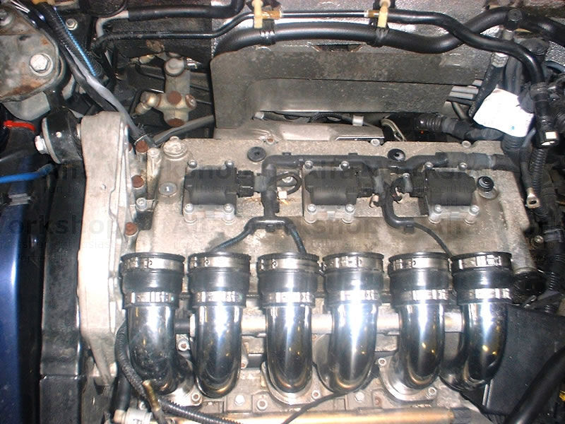 Then you have to remove the plenum chamber this is only secured by two allen keys hidden down behind it and once these are removed you have to disconnect all the pipes and wires from it, including the chrome inlet tubes, and then the engine breather pipe has to be removed from the rocker cover as you can’t pull the plenum back with it in place; now the plenum will pull off, on some models you will have to disconnect the engine management unit
