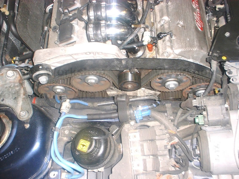 Before refitting it is worth considering fitting a water pump especially on the 2.5 V6 as the plastic impeller cracks and causes problems with engine cooling. It is always necessary to replace the tensioner as they wear out and if they break they will destroy your engine. In order to refit the cam belt it is necessary to loosen all the cam drive pulleys as they need to rotate to get the correct tension on the belt, once they are loose, tension the belt and then do up the pulley securing bolts.