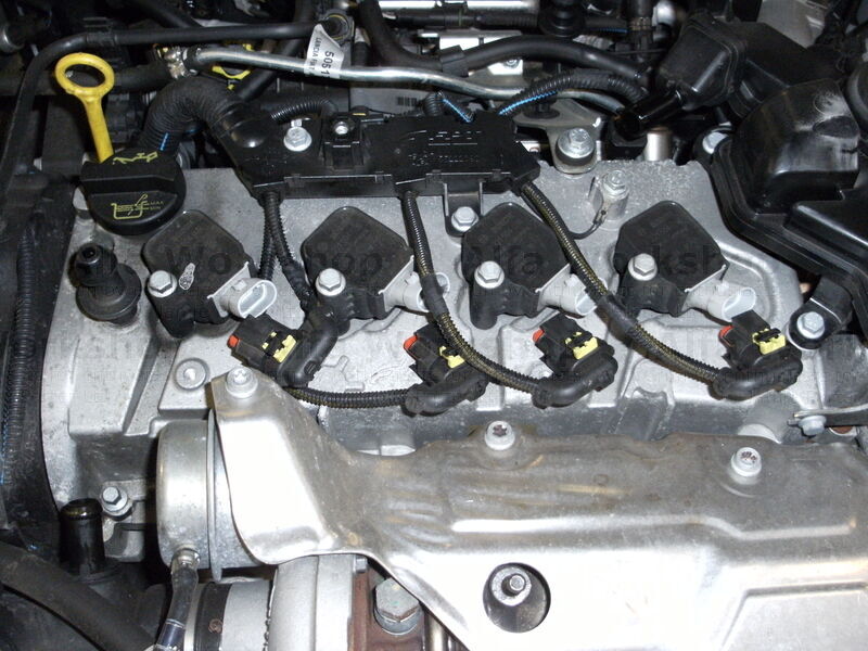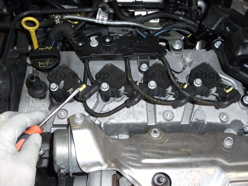Remove bolt that secures coil pack and then carefully remove coil pack