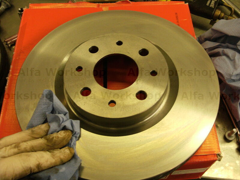 11. Clean the protective coating off the new brake disk.