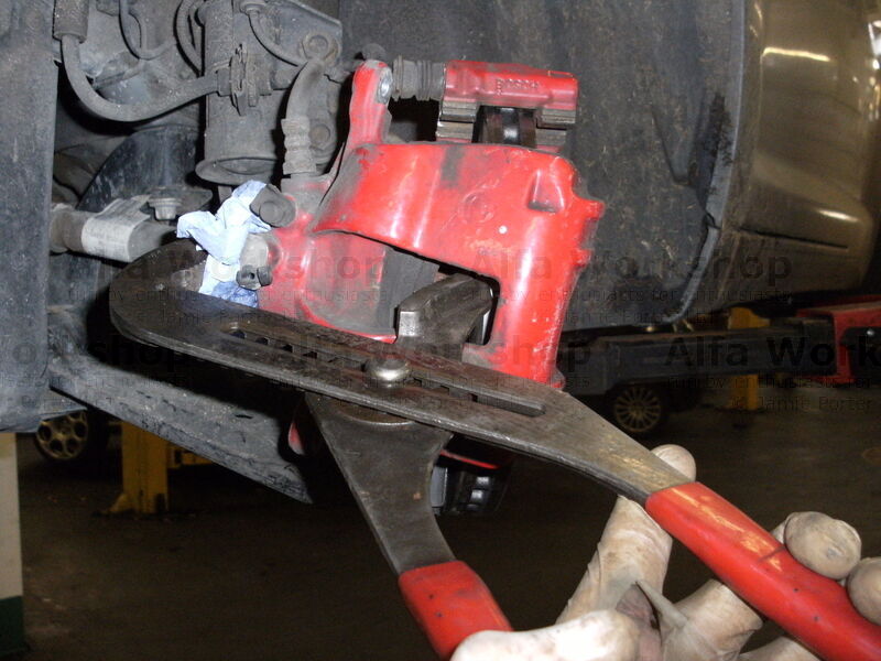 15. Making sure you protect the calliper from damage push back the piston