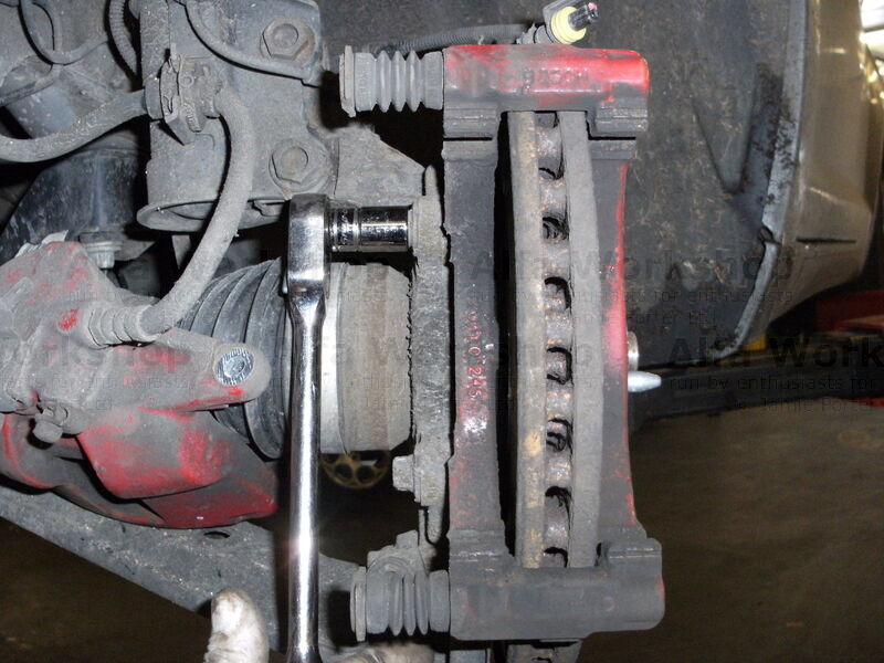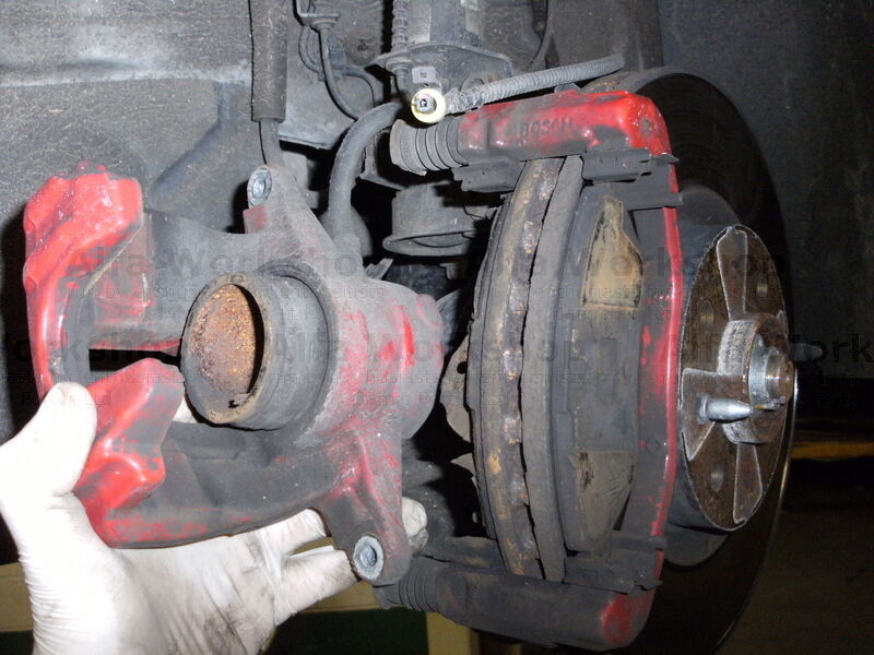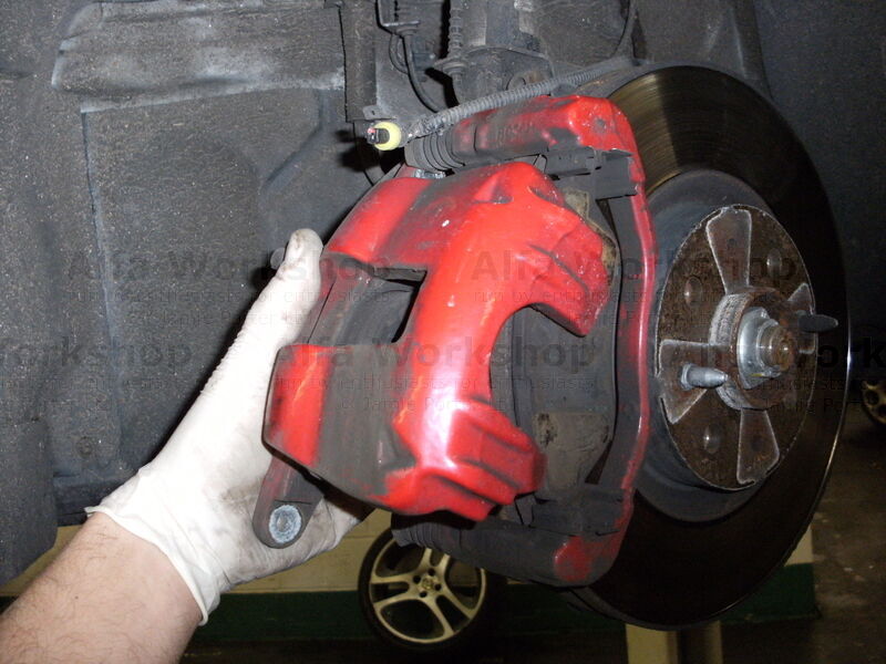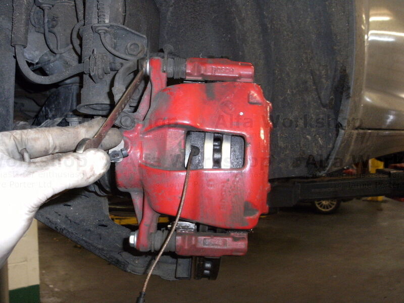 5. Then carefully remove the calliper and support it some where so the flexible brake pipe is not under strain.