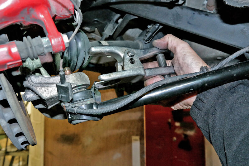 Using a ball joint splitter carefully separate the outer ball joint from the upright. If you intend to refit the existing part make sure you do not damage the boot that protects the joint.