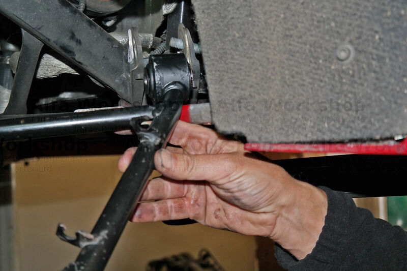 Next undo the rear bolt that secures the wishbone to the chassis.