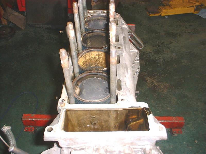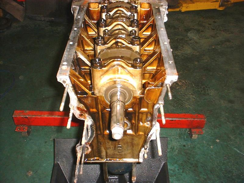 You can now remove the big end nuts while making sure that the pistons and liners do not fall out and checking that the con rods are numbered in the correct order, once this has been done successfully you can remove the main bearing caps and extract the crank shaft. If the pistons and liners are still in place which is usually the case the piston should now be removed from its liner and the liner should be extracted from the block. Rebuilding the engine is achieved by reversing these instructions