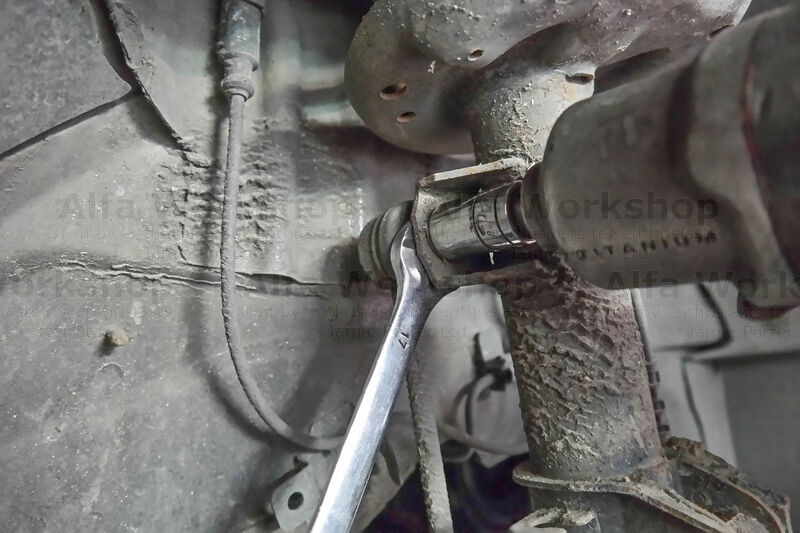 On the later models use a 17mm spanner to undo the nut while holding the tip of the ball joint with a 5mm Allen key.