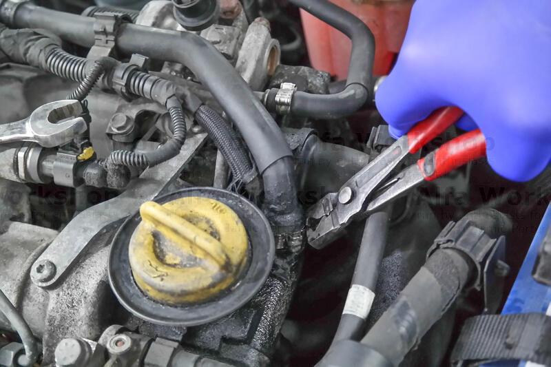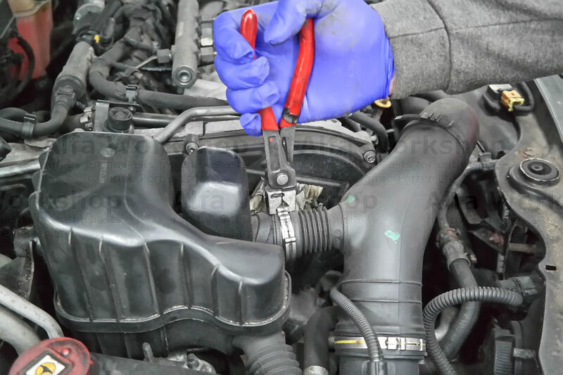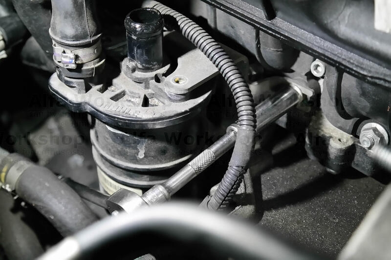 Unclip the segregator top hose near the oil filler cap.