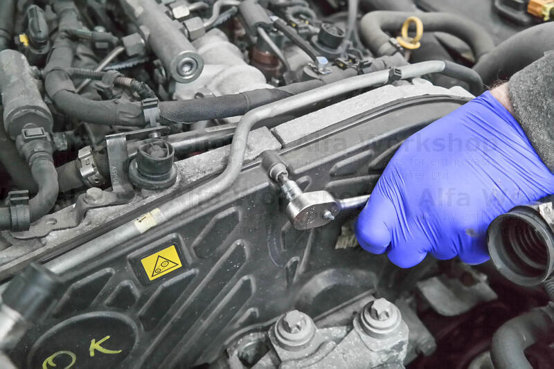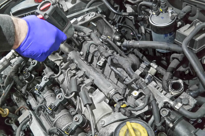 Unplug the glow plug caps, the MAP sensor and boost pressure sensor (end of fuel rail) then undo the x3 10mm bolts to the wiring loom harness.