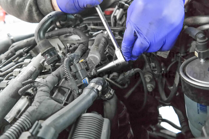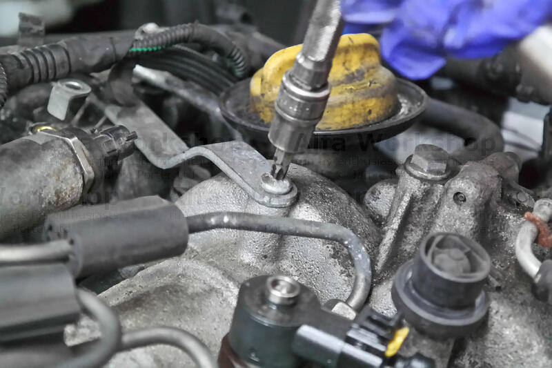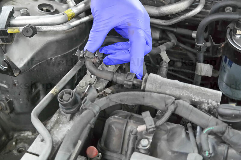 Unclip the fuel overflow rail from all x4 of the injectors, pop it out and remove the whole line.
