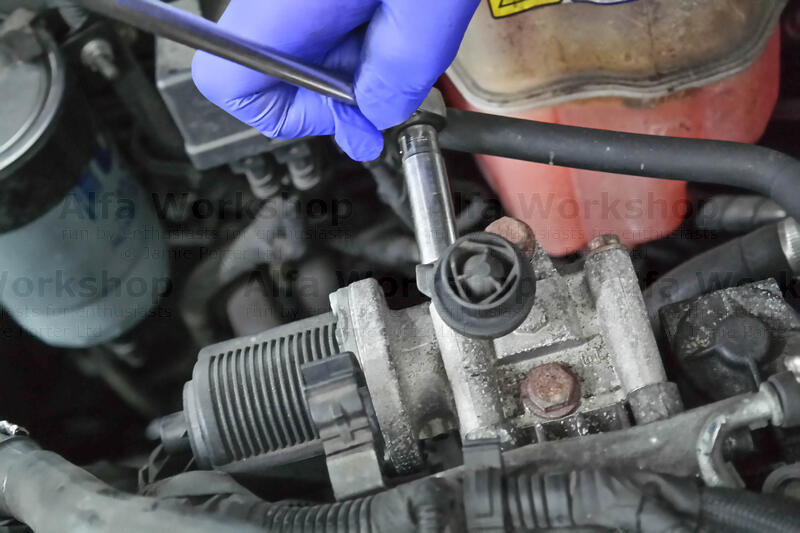 Undo the x2 10mm nuts on the EGR valve that holds the engine cover mounting bracket then the x2 10mm studs and x2 10mm bolts.