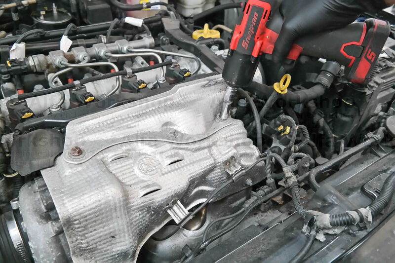 As you remove the heat shield retrieve the lambda sensor through it’s hole.
