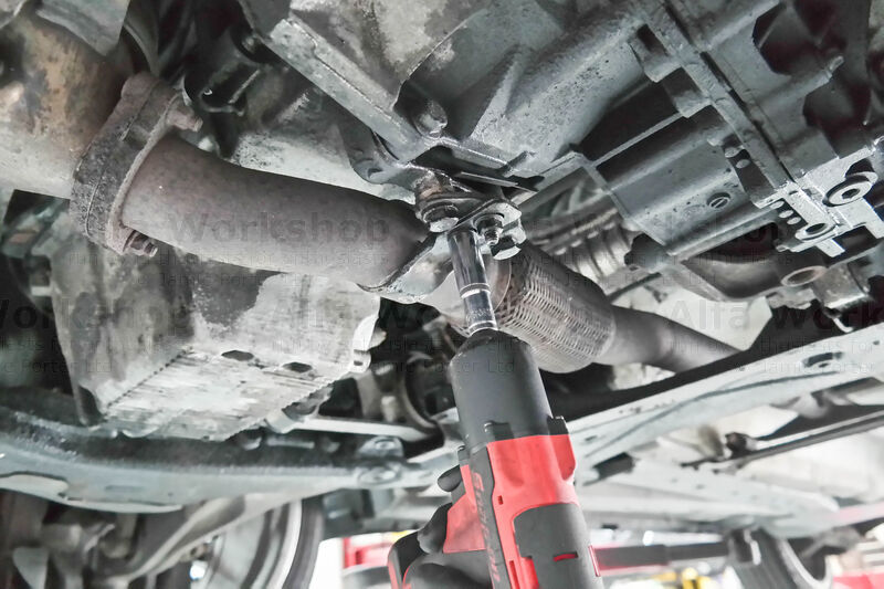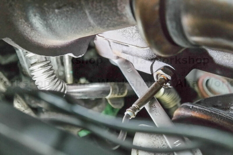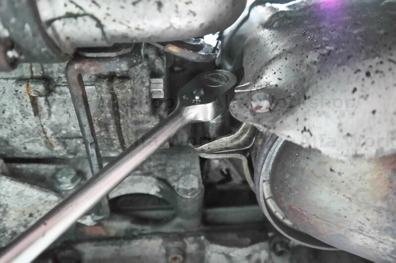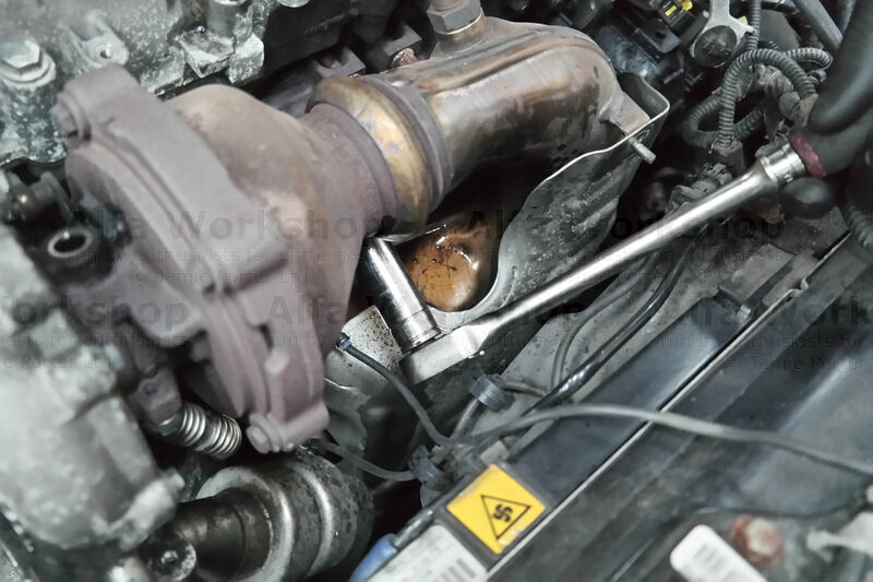 Unclip the lambda terminal then unplug the lambda sensor and the exhaust gas temperature sensor next to it.