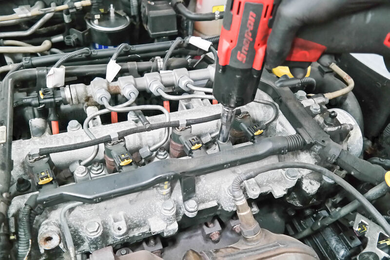 ….and unplug all of the injectors (this gives you access to the oil feed hose).