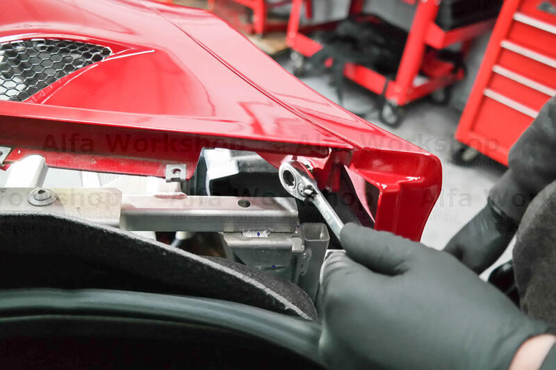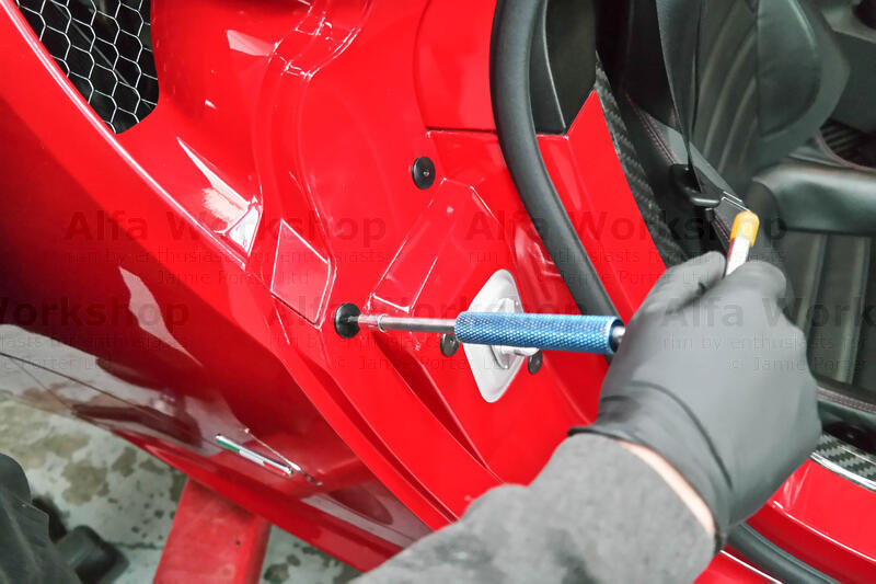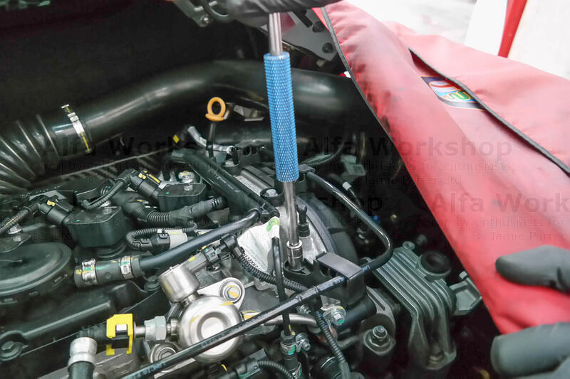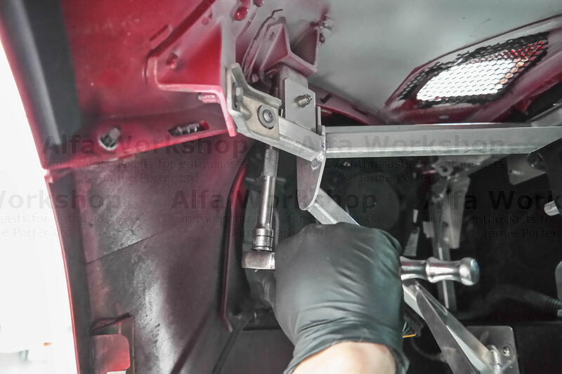 Turn the crank clockwise with a 19mm spanner until it’s align with the crank locking tool then secure with a T45 bolt.