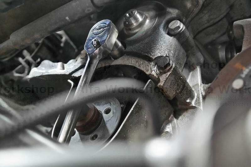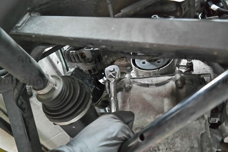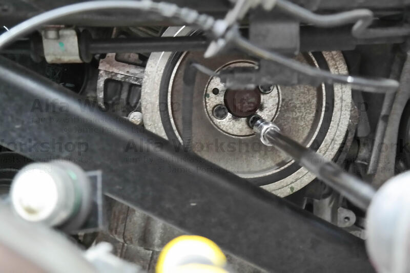 Undo the x4 T45 bolts to the auxiliary bottom pulley.