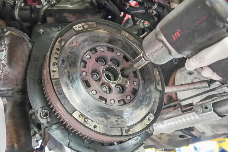 Undo the x6 T40 bolts to the clutch cover and remove the clutch.