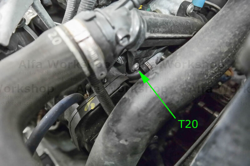 ….to undo the T20 (Torx) bolt to the bracket on the EGR valve plastic coolant housing.