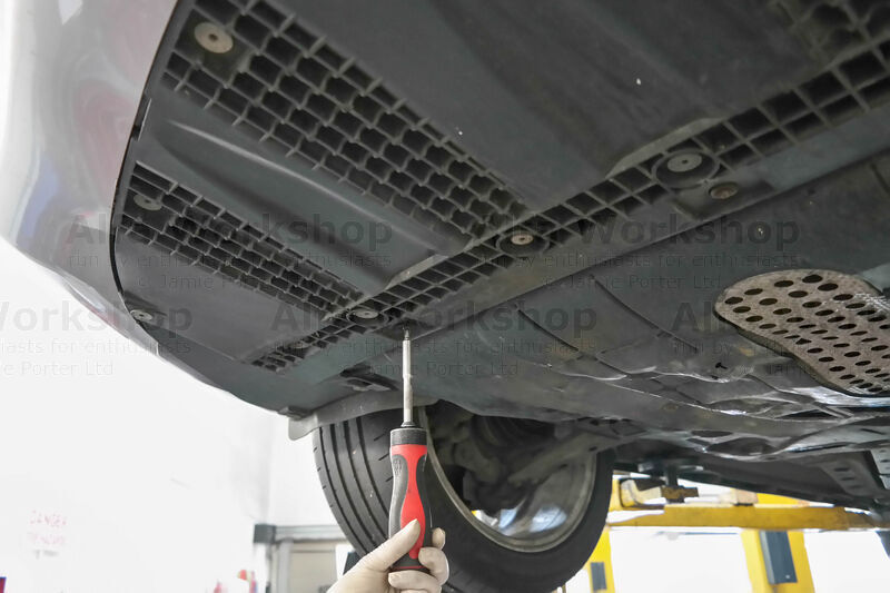 Remove the 10mm bolts, T27 and Phillips screws to the two part undertray.