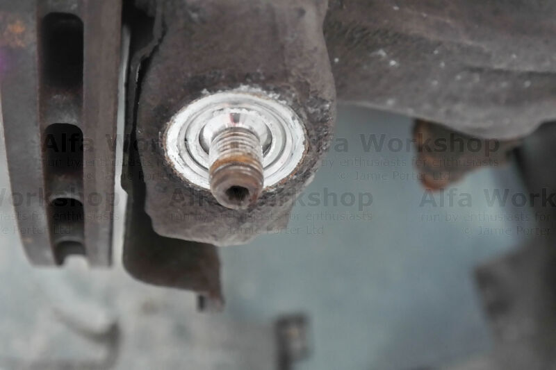 If you look at the bottom of the front pillar where the ball joint falls through you will see that there is a collet (inner sleeve). Make sure that on removal of the ball joint, if the collet is stuck to the ball joint you don’t throw it away.