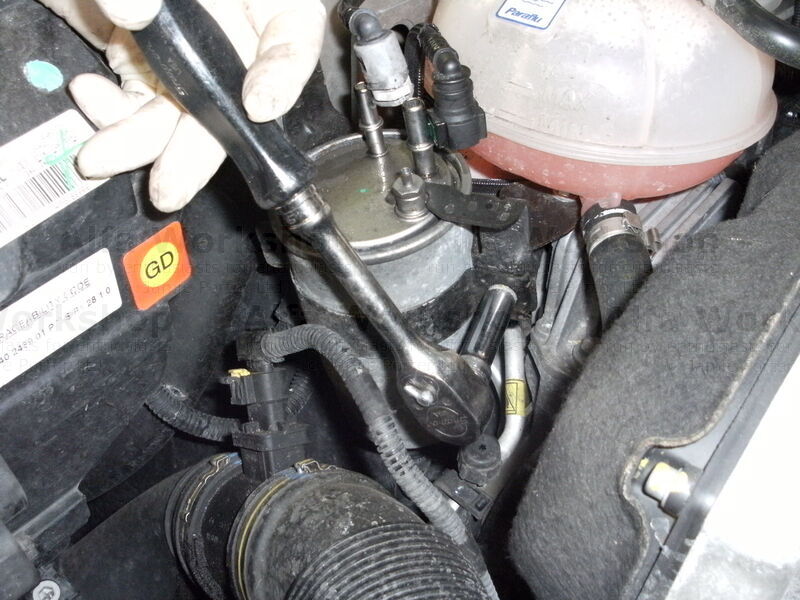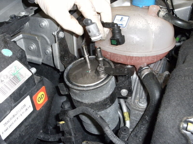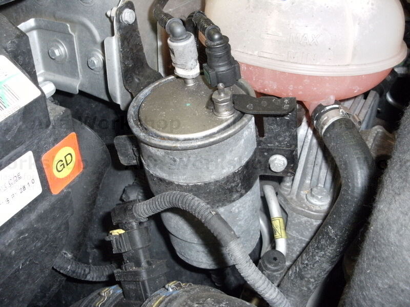 The fuel filter is located under the bonnet by the left wing in front of the coolant tank.
