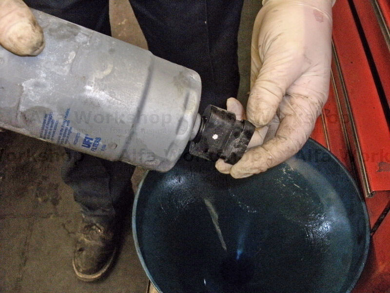 Unscrew the bottom sending unit over a suitable container and leave the filter to drain.