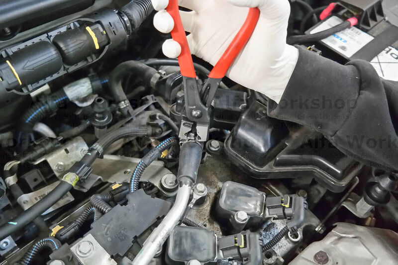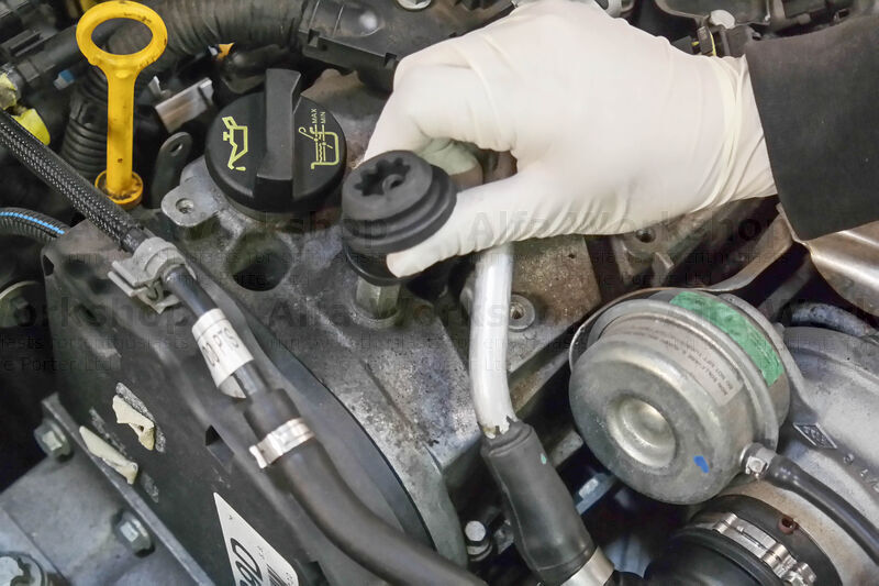 Unclip the breather hose at both ends from the intake pipe to the rocker expansion chamber.