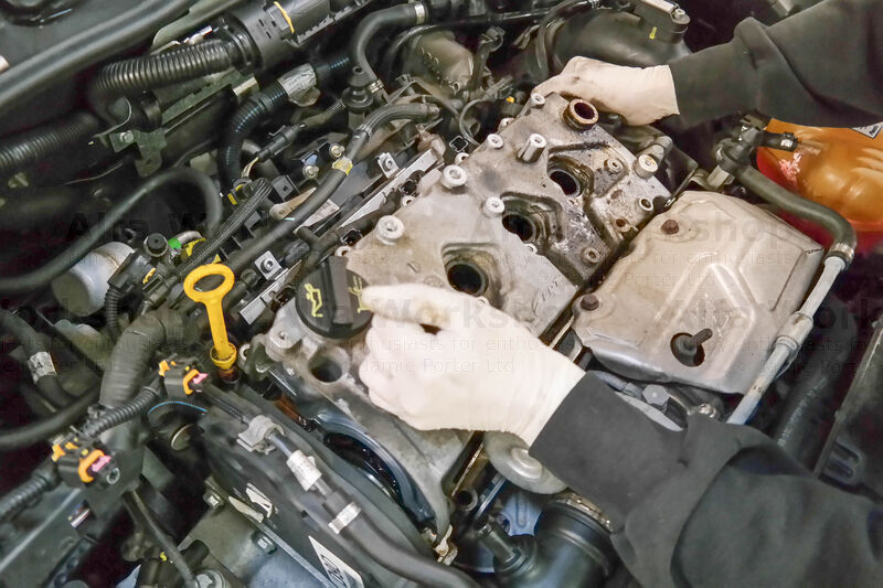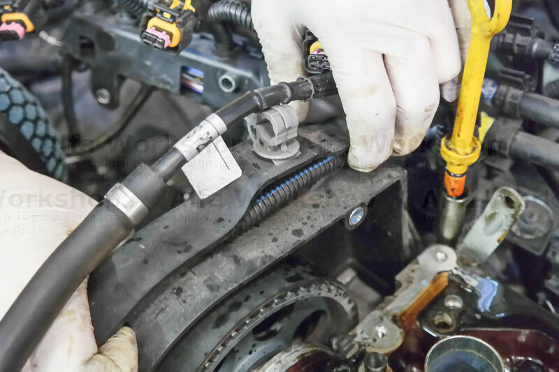 Unclip the breather pipe and pull the crank sensor wire out from the cam belt cover.