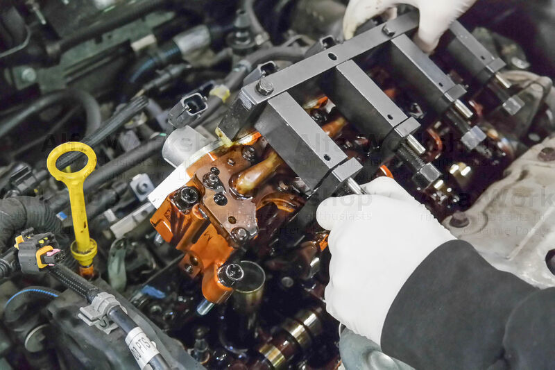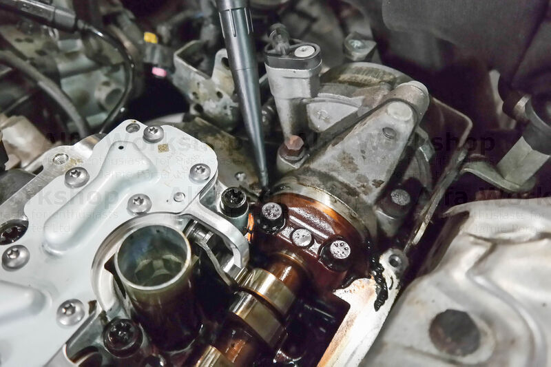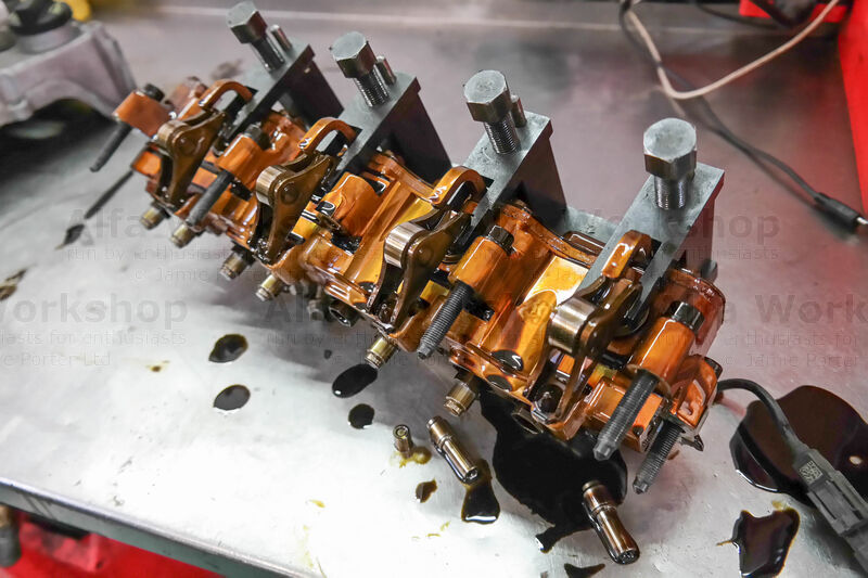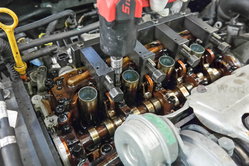 Place the locking tool on the Multiair unit, screw down the back bolts then wind in the front bolts to compress the rocker springs.