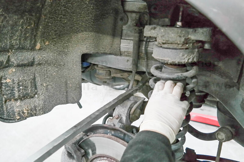Don’t forget to remove the springs rubber seat and the shock absorber boot.