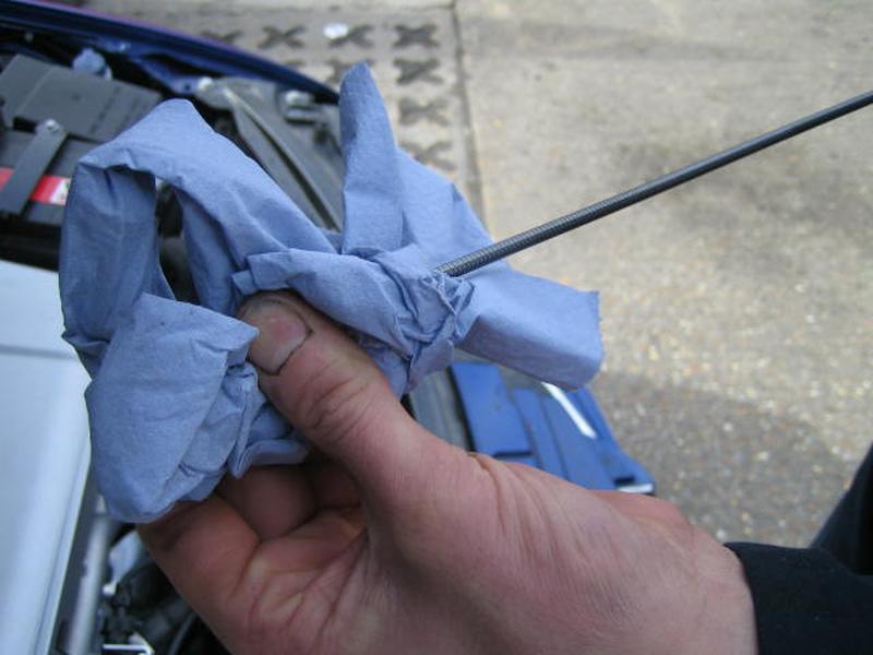 3:- Re insert dip stick in tube, push fully home and then withdraw and check the oil level.