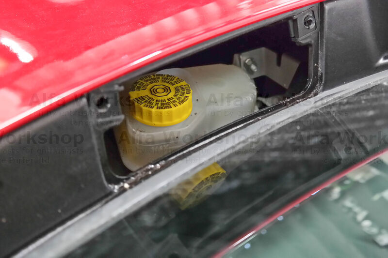 Hiding is the brake fluid tank. Remove the cap and with the aid of the funnel and hose again top up to the correct level.